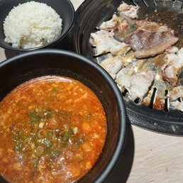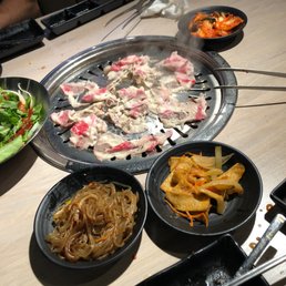 Good place to hang and eat kbbq at! Staff is nice and efficient, never needed to ask for a grill change because they were on top of it! Wish there were more sides. Tried lots of good things: chicken, beef, pork belly, veggies, all so good! The wait time at 6pm on a Sunday is short! But at 8:30pm waitlist starts piling up! Apparently you get two hours free parking according to the posters that are inside and around the restaurant!?