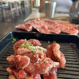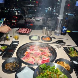 I heard good things about this place online and I'm happy to report it definitely did not disappoint! It was the best place to take a friend who had never tried kbbq before, and my favorite had to be either the kalbi or the wagyu beef belly! I love that there's a meat bar where you can choose some things on your own as well as a salad bar. There was also onion and zucchini to grill which was great. The waitstaff was very helpful and attentive. I am definitely coming back! One of my top 5 kbbq spots for sure.